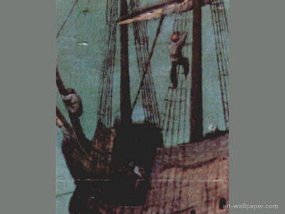 On his return to Flanders, Bruegel began working for the Antwerp engraver and print-seller, Hieronymus Cock, and his Alpine drawings formed the basis for a number of elaborate landscapes, although they were actually engraved by other artists. He was then employed on figure compositions, including the famous Big Fish Eat Little Fish. Like most of his work they deftly combined entertainment with serious moral instruction and the style is reminiscent of Hieronymus Bosch (active 1480-81). Indeed the engraving of Big Fish Eat Little Fish was first issued under Bosch's name. The similarities between the two artists were obviously recognised at the time and a Latin epigram of 1572 refers to Bruegel as 'this new Hieronymus Bosch'.